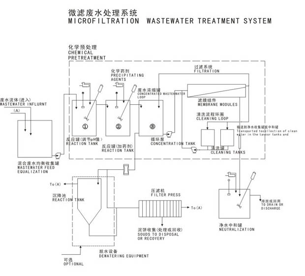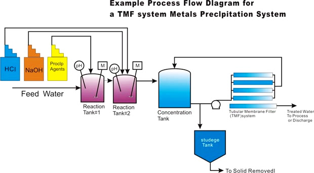 TMF系統(tǒng)用做重金屬廢水處理的典型流程圖
