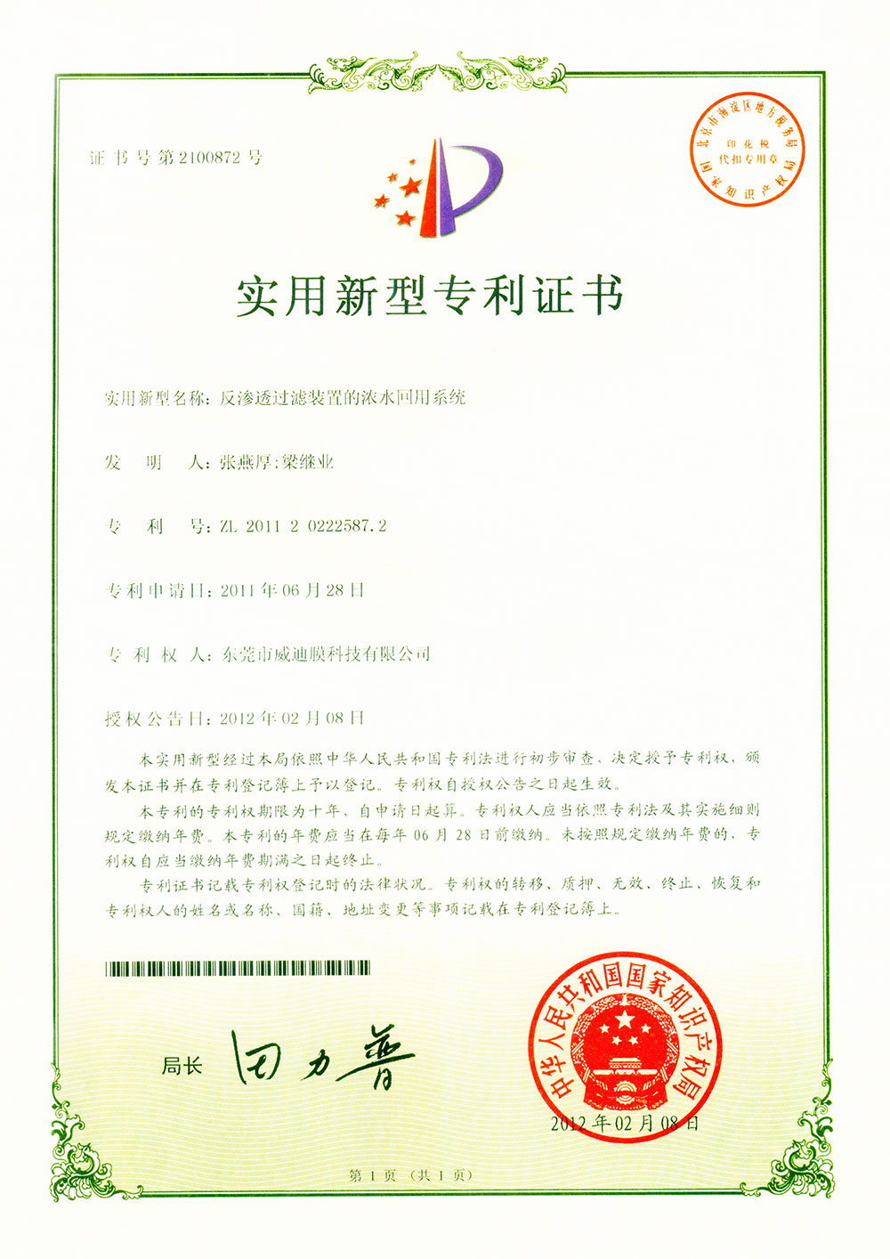 反滲透過濾裝置的濃水回用系統(tǒng)
