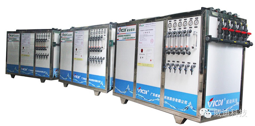 (5) 處理效果好:連續(xù)高頻脈沖電離膜處理法產(chǎn)生的氫氧化物比藥劑法的活性高,凝聚吸附能力強(qiáng),處理效果好(化學(xué)處理法難以達(dá)到);在該系統(tǒng)處理過(guò)程中,陽(yáng)極上產(chǎn)生的氧和氯可使有機(jī)物發(fā)生氧化反應(yīng)轉(zhuǎn)化為無(wú)害成分,并起到殺菌作用;陰極上發(fā)生的還原作用使氧化型色素還原成為無(wú)色物質(zhì);