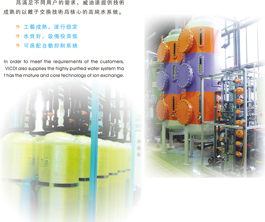 EDI裝置是將離子交換樹脂充夾在陰/陽離子交換膜之間形成EDI單元。利用樹脂制備高純水,利用水電解產(chǎn)生的H+、OH-離子在膜堆內(nèi)再生失效的樹脂。因此EDI系統(tǒng)不需要酸堿再生且能連續(xù)生產(chǎn),系統(tǒng)自動(dòng)化程度高。