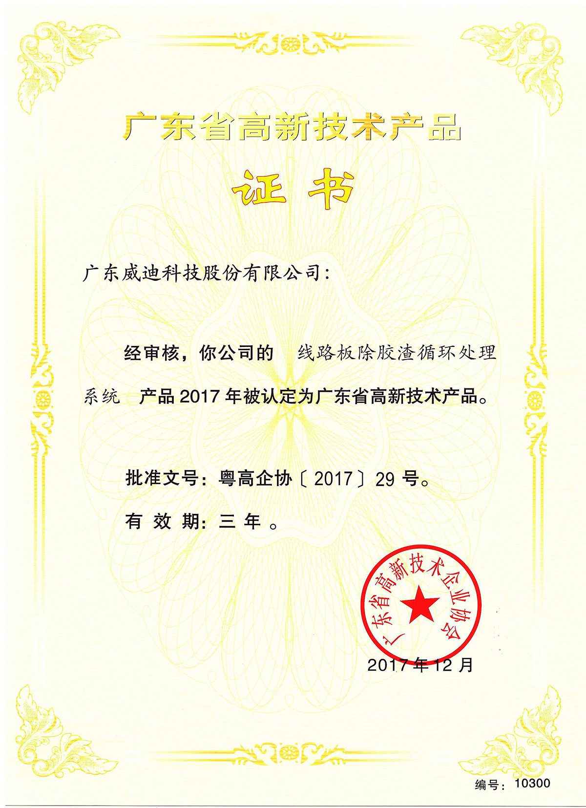2017年廣東省高新技術(shù)產(chǎn)品-線路板除膠渣循環(huán)處理系統(tǒng)