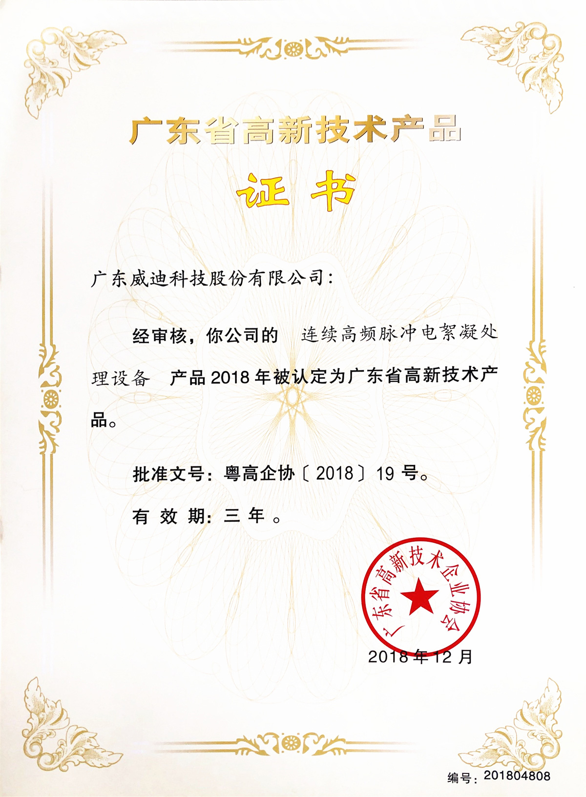 2018年廣東省高新技術(shù)產(chǎn)品-連續(xù)高頻脈沖電絮凝處理設(shè)備