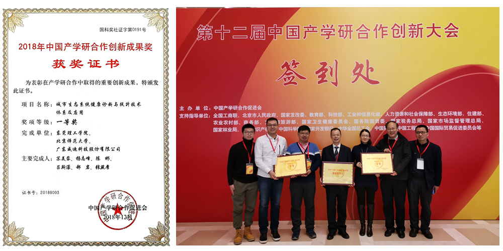 由廣東威迪科技股份有限公司聯(lián)合東莞理工學院、北京師范大學共同申報的《城市生態(tài)系統(tǒng)健康診斷與提升技術(shù)體系及應(yīng)用》項目榮獲2018年中國產(chǎn)學研合作創(chuàng)新成果一等獎。