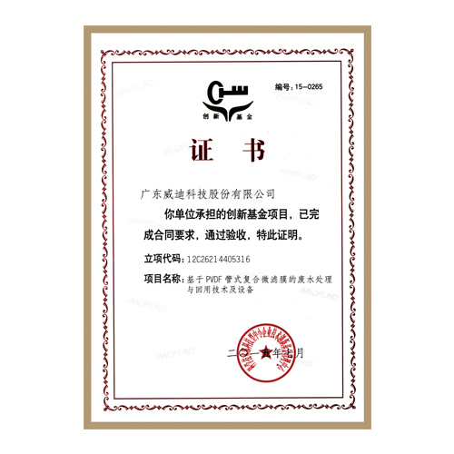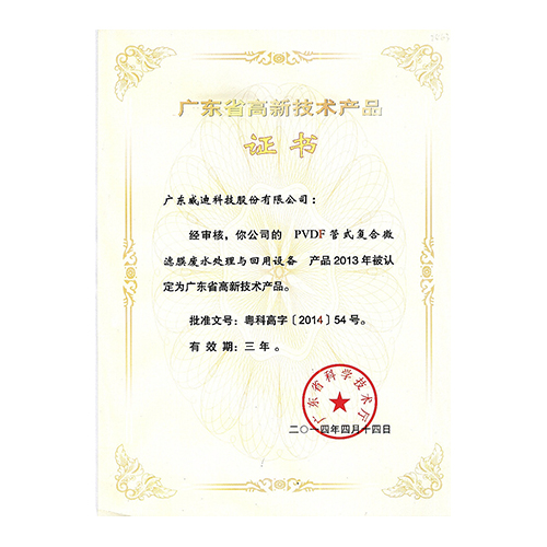 2013年廣東省高新技術(shù)產(chǎn)品-PVDF管式復合微濾膜廢水處理與回用系統(tǒng)