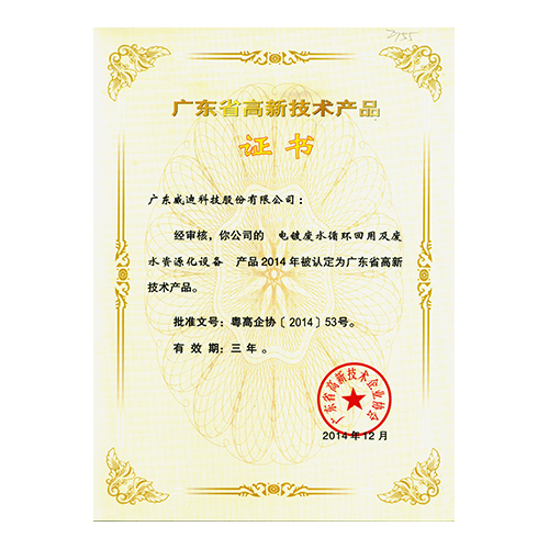 2014年廣東高新技術(shù)產(chǎn)品-電鍍廢水循環(huán)回用及廢水資源化設備